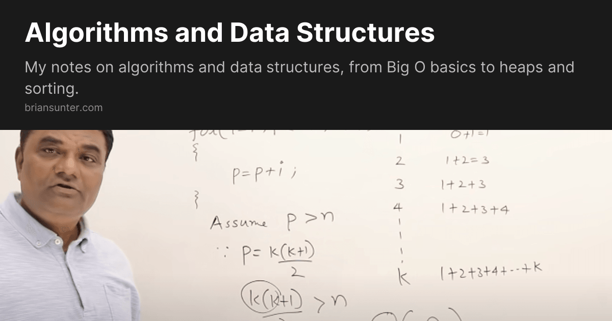 My notes on algorithms and data structures, from Big O basics to heaps and sorting.