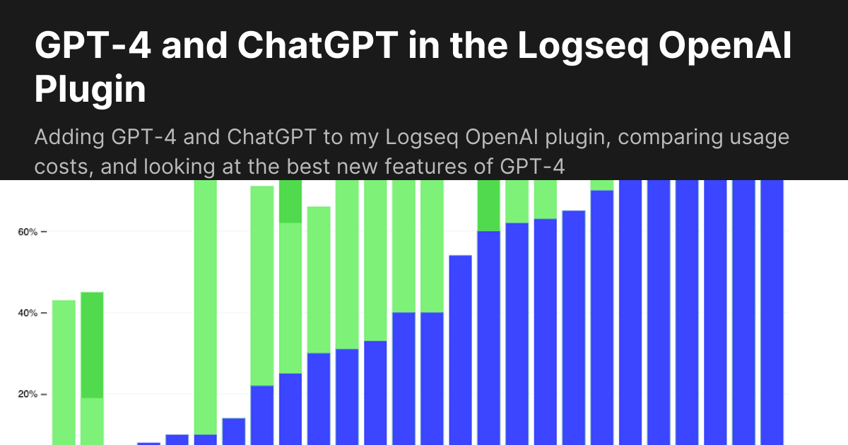 OpenAI just released a new AI model, GPT-4, which I recently integrated into my Logseq OpenAI plugin (You do need a GPT-4 private beta key to use it until it’s released publicly)