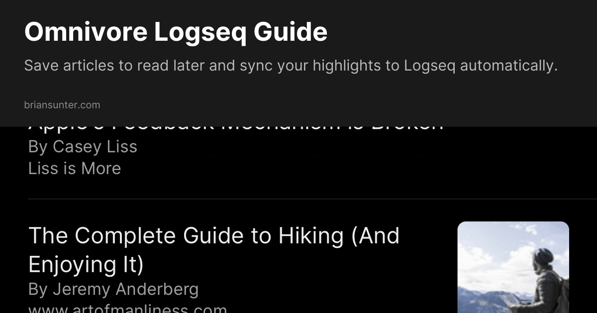Now all of the articles you saved and your highlights from the app and chrome extension show up in your Logseq graph on a page called Omnivore.