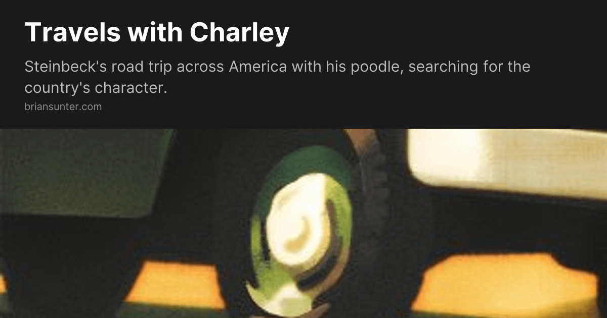 John Steinbeck sets out on a road trip across America with his standard poodle, Charley, in search of “the character of the country.”